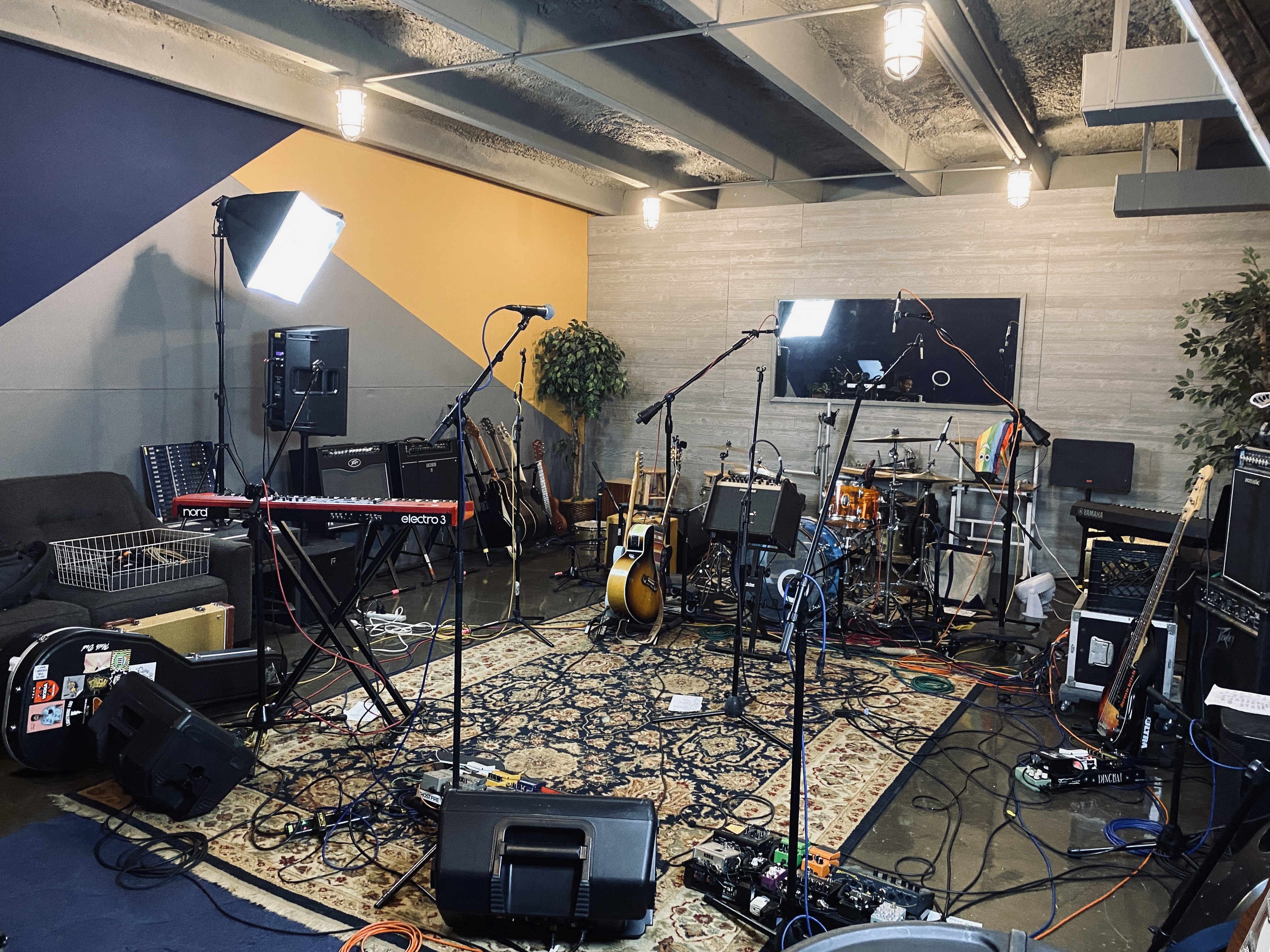 520+ sq ft creative sanctuary for songwriting, recording, rehearsal, and content creation. Drums, amps, PA, keyboards, and full recording capabilities.